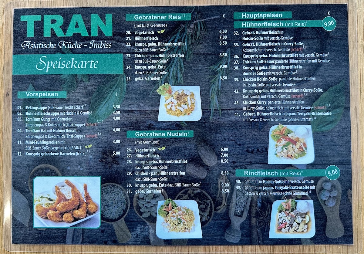 Introducing the menu at TRAN Asian Küche in Leipzig
